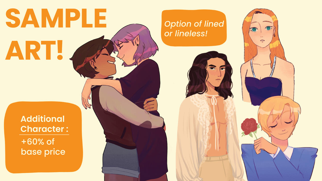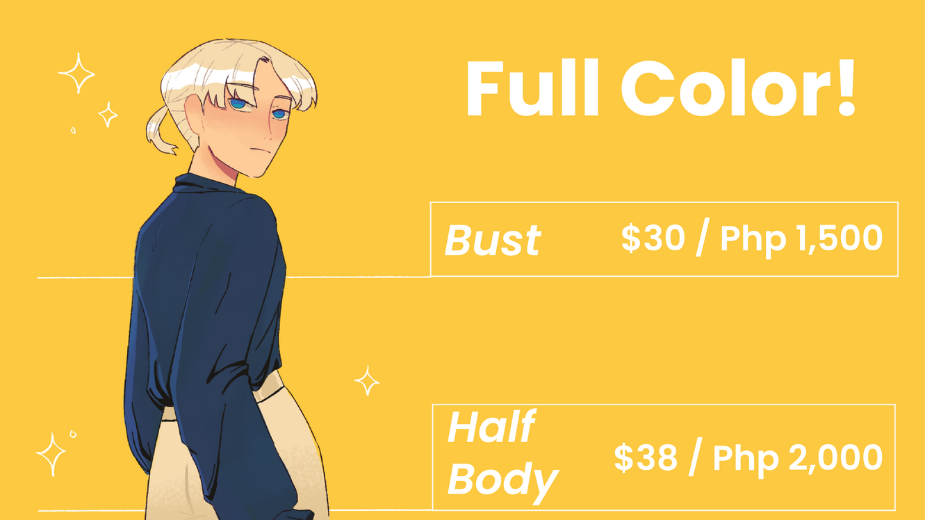 TERMS AND CONDITIONS• I have the right to refuse a commission.• With permission, I am free to post finished works in my social media / portfolios• All works are for personal use only. Distributing/profiting off of my work in prohibited.• As long as I am credited, you are allowed to post finished works in your own social media.• I will not start on the commission until the full payment is received.• Once I have started on the coloring phase, refunds will not be allowed.• The latest you might receive the final output is around 1 month.